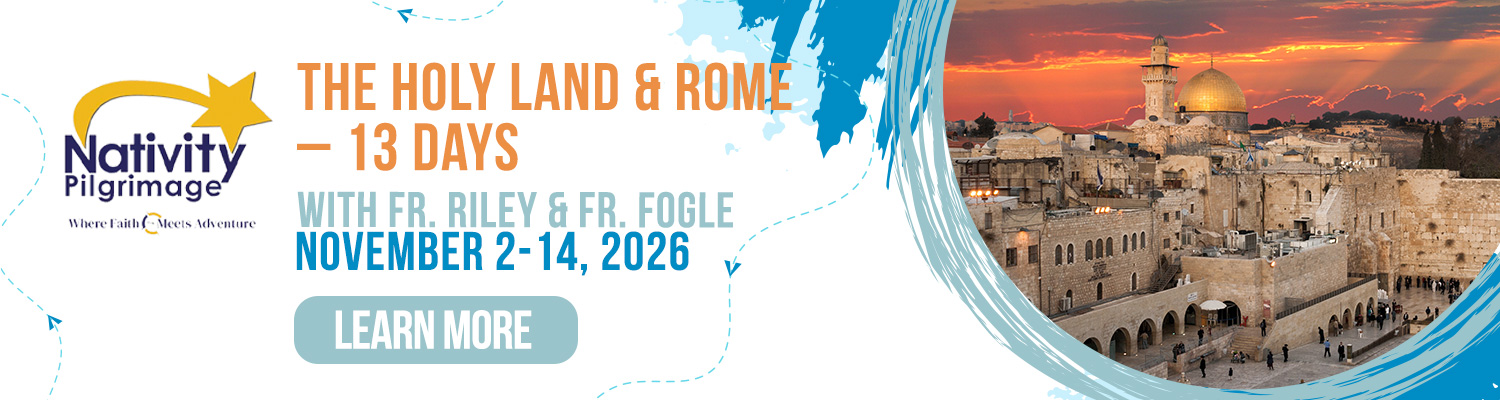 Mon, Nov 2 - Sat, Nov 14 with Fr. Bruce Fogle and Fr. Eric Riley. The trip price is $5,999.00 per person. (Air fare, Hotels, some meals).
